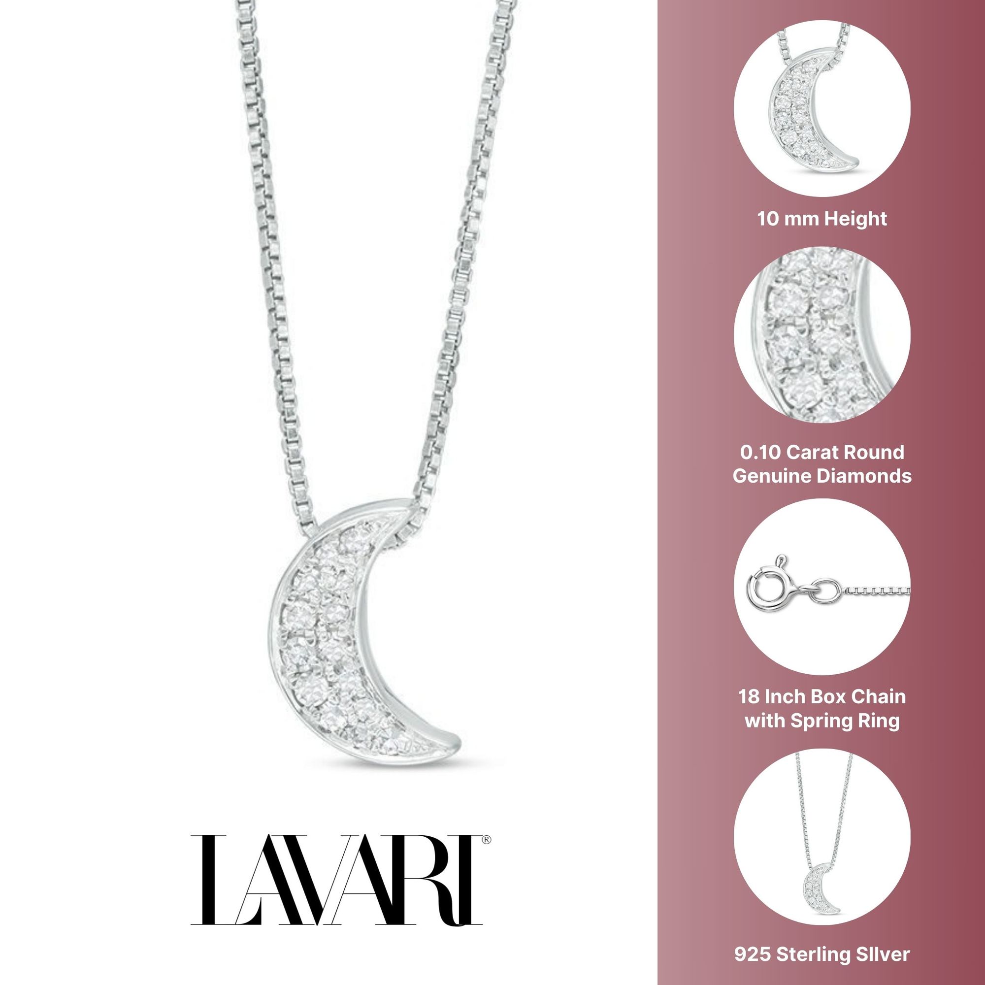 Introducing our exquisite 925 Sterling Silver 0.10 cttw Moon Diamond Pendant. Meticulously crafted, this pendant showcases a sparkling 0.10 cttw diamond on a moon-shaped design. Made with premium quality 925 sterling silver, it radiates elegance and charm. Hanging gracefully from an 18-inch box chain, this pendant becomes a versatile and timeless accessory that complements any outfit. Whether worn for a special occasion or as an everyday symbol, it effortlessly enhances your style. Embrace the celestial beauty of our 925 Sterling Silver 0.10 cttw Moon Diamond Pendant, a stunning piece that captures the essence of grace and sophistication. Let its enchanting design and shimmering diamond make a captivating statement, reflecting your impeccable taste.
