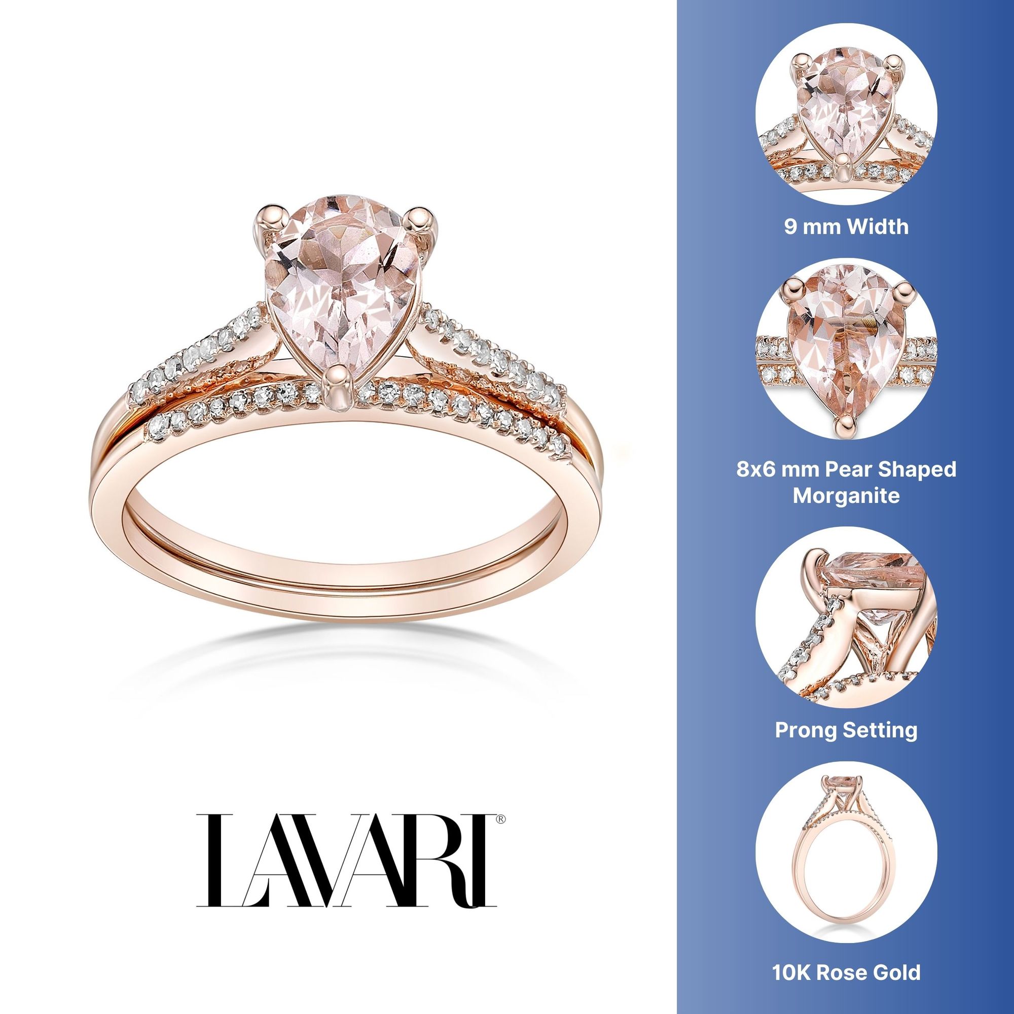 Morganite Ring with 0.14 cttw Diamond in Rose Gold