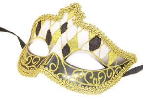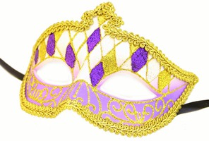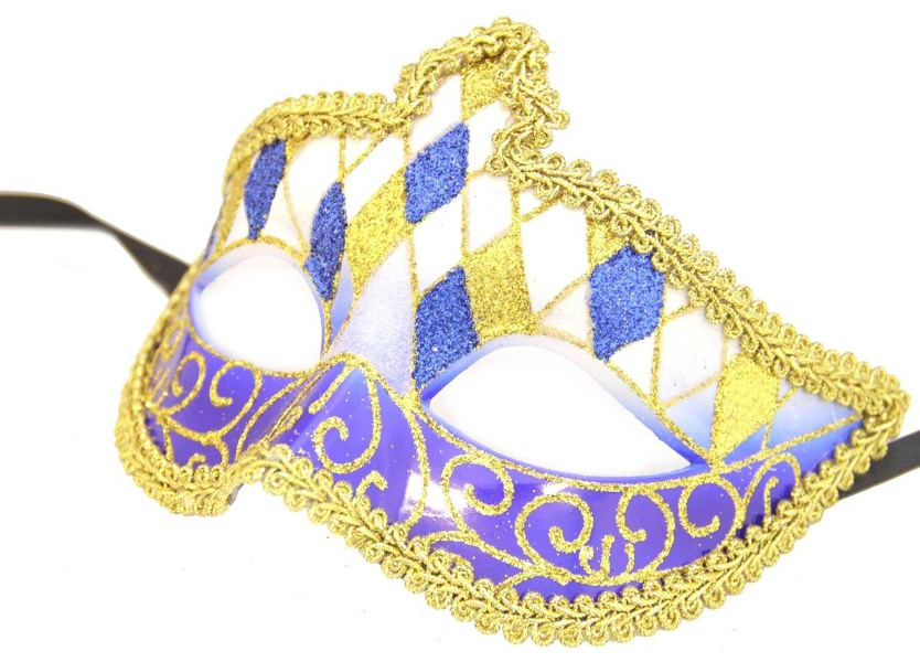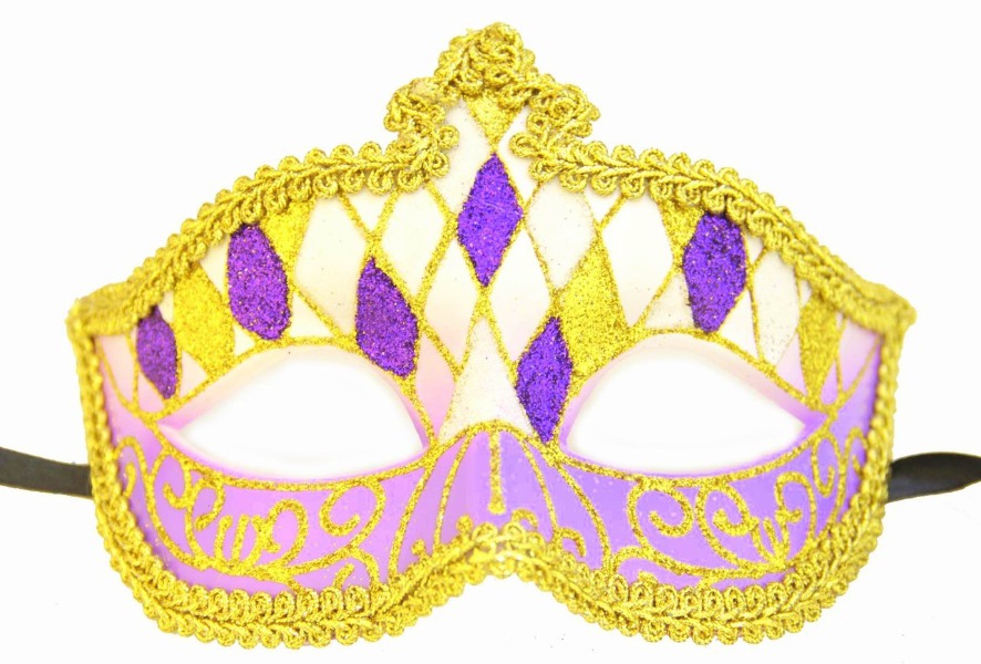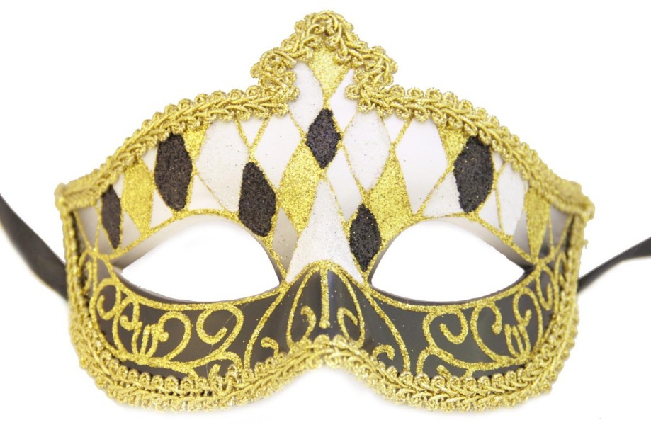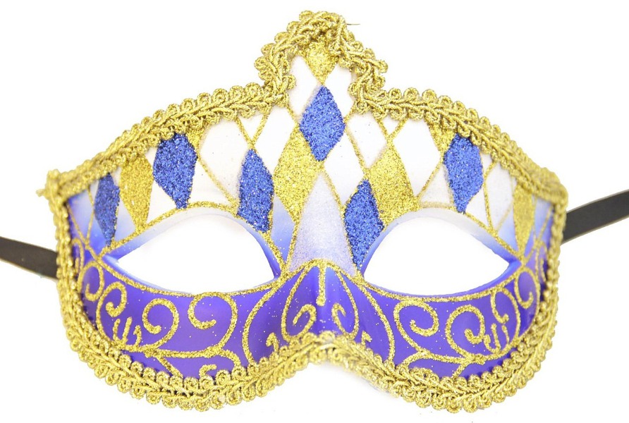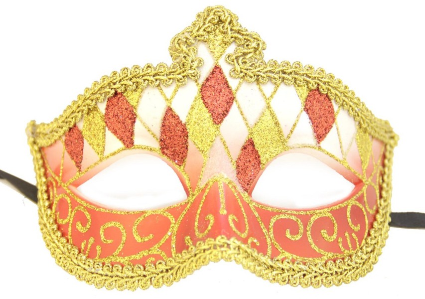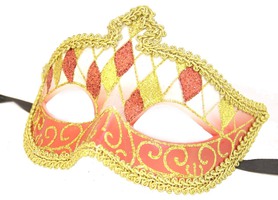 Multi-colored, Italian cut masquerade mask with glittered gold designs, gold trim and a diamondback motif; the perfect mask for Carnival season!!!