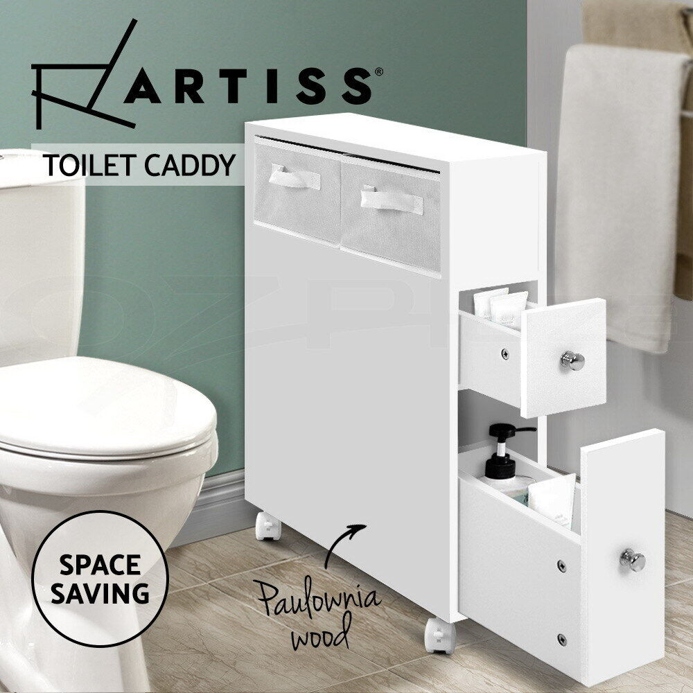 Update your bathroom to turn a chaotic routine into a calm one. With the Artiss Toilet Storage Caddy, you can store your daily bathroom items and access them easily knowing where they are. It creates space and order too, making your bathroom neat and tidy. The slim and compact caddy comprises an non-woven basket, storage drawers and cleaning brush holders too. Made of quality and eco-friendly MDF board, the caddy is more stable and stands up better in heat and humidity. It is also fitted with castor wheels for easy movement.