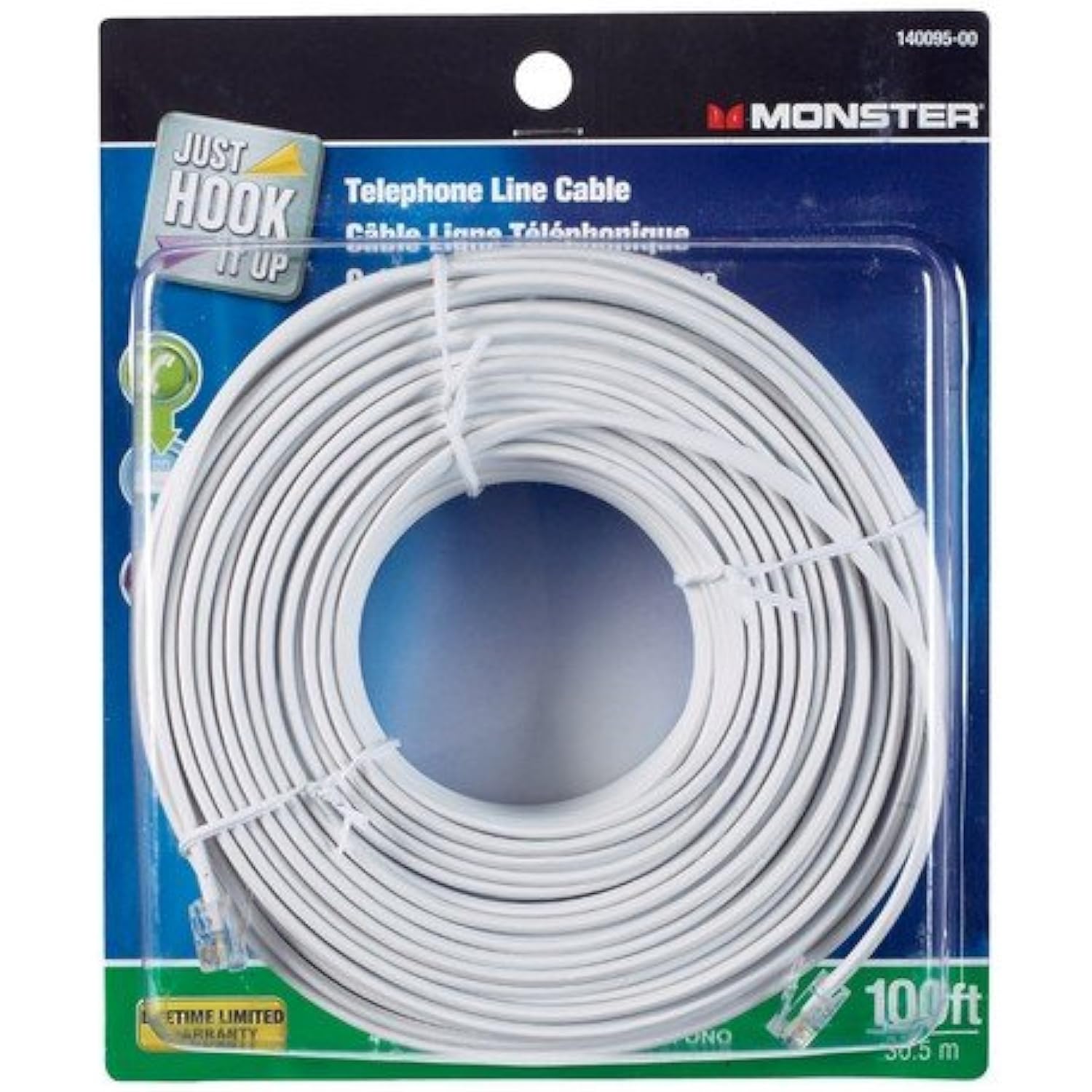 Monster Jhiu 140095-00 100 ft. White Modular Telephone Line Cord Pack of 2