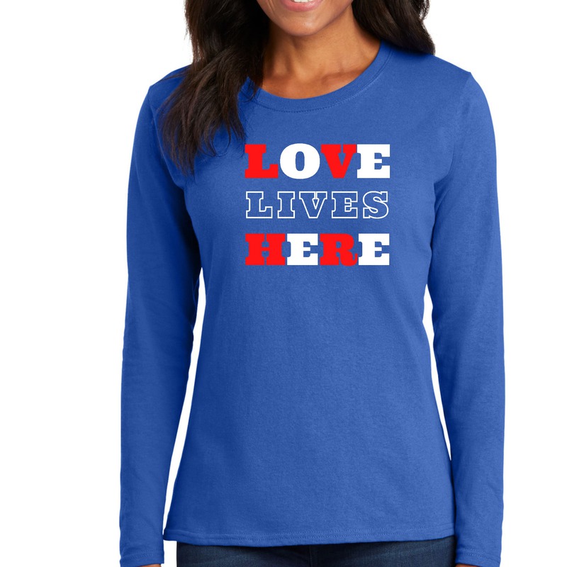 Womens Long Sleeve Graphic T-shirt - Love Lives Here Christian