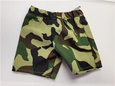 Camo pants : Elastic Waist. Slit cut in back for any tails. No Pocket. Nice and Crispy Clean with No Tears. No Tag. Measures from top to bottom of leg hem at 8" long and waist is 7.5" wide. Each leg is 5" wide at the opening.