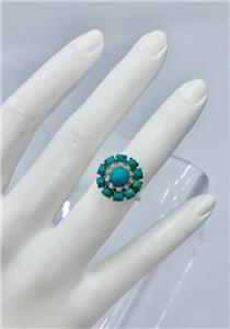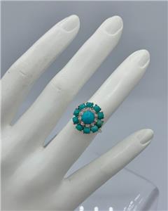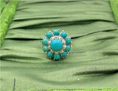 This is a magnificent estate jewel! The stunning effect of the gorgeous Persian turquoise and the spectacular diamonds and the beautiful 14K gold setting is so divine! I was just at the Oscars Academy Awards and similar jewels were the rage!