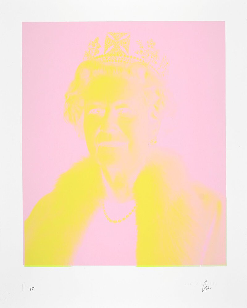 This is a 2 Colour Screenprint on Somerset Satin 300gsm Paper hand signed and numbered by Chris Levine of a limited edition of only 5 copies. Not many are the official portraits of the Queen and this one is definitely the most breaking. Chris Levine took multiple shots from the Majesty on his camera which was moving along a track taking a series of stills from left to right. Levine had the idea of making a hologram from each still. This way, EQUANIMITY series conforms a complete view of 180º from the Queen. "I had an idea in my mind from the beginning — to get beyond all the noise and reduce her to a kind of essence." - Chris Levine