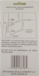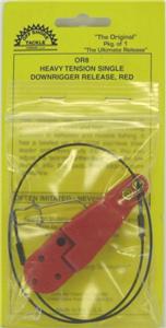 This listing is for Off Shore Tackle OR8 Heavy Tension Single Downrigger Release. This release is ideal for Muskie, trophy Pike, and salt water fish using over 20 pound test monofilament line. Heavy Tension Release ensures very firm spring tension to withstand large lures and high speed trolling common in saltwater fishing. Has a beefed up, 18"-210" stainless steel leader and heavy duty 2/0 snap. Great for trolling with cowbells and dodgers. It