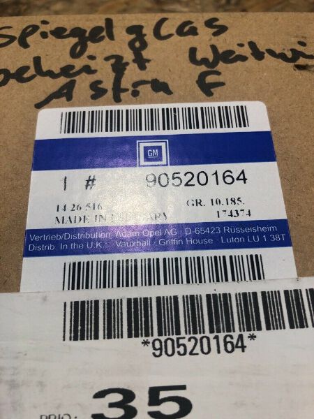 Original GM Opel Spiegelglas Astra F beheizt *NEU* 90520164 Wir bieten Ihnen hier ein neues Spiegelglas für die unten stehenden Modelle an. Astra F Teilenummer: 90520164 / 1426516 Vorhanden 2x Lager: 04-03-2019 ID: 1068081392