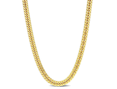 Standout from the crowd with this Double Fancy Curb Link Necklace. Mounted in lustrous yellow gold plated sterling silver, it showcases a delicate double fancy curb link chain, suitable for layering. Enhanced with a high polished finish, this necklace is made in Italy and measures 18-inch in length that secures with a lobster clasp for a longer durability. This necklace is 5.5mm wide, which makes it a good solo wear too. Coordinate this necklace with any business or casual attire to look stunning.