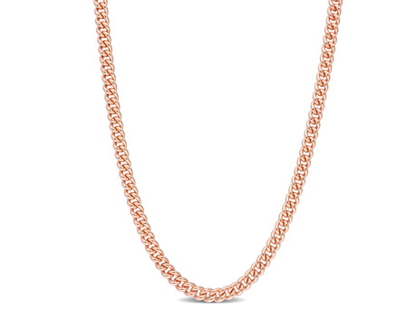 Express your love with this Curb Link Necklace. Crafted in lustrous rose gold plated sterling silver, it features a delicate curb link necklace made in Italy. Polished a brilliant shine, this link necklace measures 24-inch in length and secures with a lobster clasp. Melt his or her heart with this shining and fascinating curb link necklace.