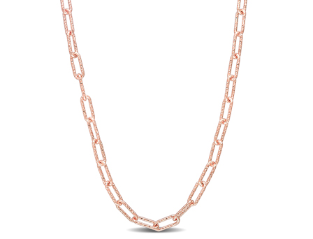 Melt her heart and see her smile with sparkle in her eyes with this enchanting Paperclip Necklace. Crafted in sparkling rose gold plated sterling silver, this ravishing 16-inch necklace is securely and comfortably fastened with a lobster clasp. Made in Italy and polished to a brilliant shine, this sumptuous necklace is sure to grab attention of every onlooker. An evergreen addition to any jewelry collection.