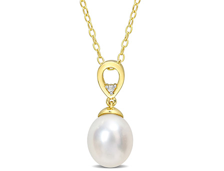 This timeless drop pendant is crafted in shimmering yellow plated sterling silver. This classic pendant showcases a drop-shaped, South sea cultured freshwater pearl and a round-cut, prong-set white topaz gemstone placed on top of the pearl in an open teardrop motif. Enhanced with a high polished finish, this elegant pendant is suspended on an 18-inch round cable chain. An accessory that will add a touch of style even to your casual outfits.