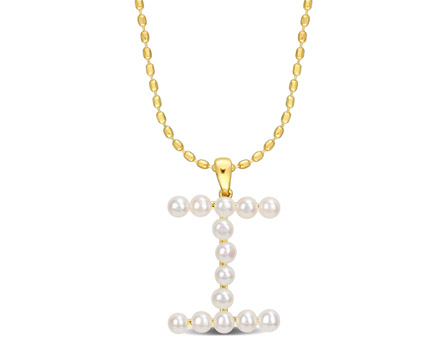 Gift yourself a flawless accessory like this Beaded 'I' Pendant with Chain from the Initial Collection with miniature pearls. Crafted in lustrous yellow gold plated sterling silver, this stylish pendant features 14 button-shaped cultured freshwater pearls (3.5-4mm) arranged in letter 'I'. Enhanced with a high polished finish, this eye-catching pendant is suspended on an 18-inches oval diamond cut bead chain and is comfortably secured with a spring ring clasp. lobster clasp. This versatile pendant can be coordinated with a dark colored outfit for an appealing look.