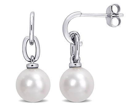 Classical and stunning, these Freshwater Cultured Pearl Open Huggie Link Earrings will add a touch of timeless elegance to your style. Crafted in glowing sterling silver they feature two round-cut, freshwater cultured white pearls (9-9.5mm) beautifully hung on open enhancer for an effortless look. Enhanced with a high polish finish, these twinkling pearls are secured with butterfly closures. These dazzling pearl earrings will make a standout addition to any jewelry collection.