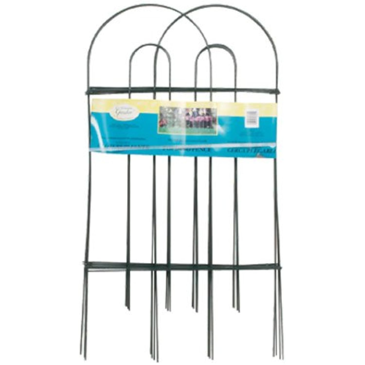 A double arch effect lends an architectural hint to this fence, while the green color blends with your plants