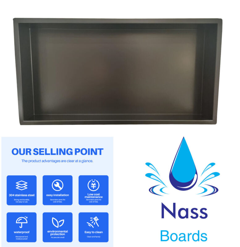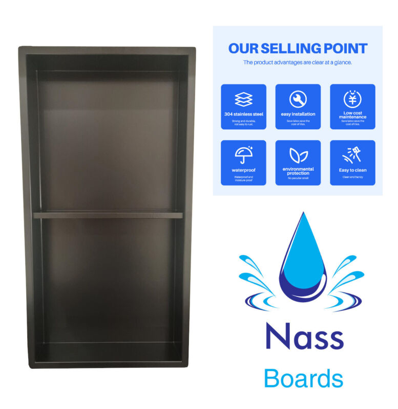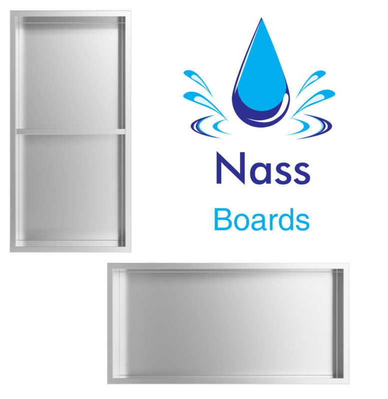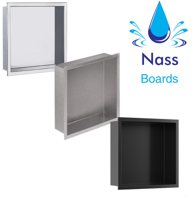 The Shower Niche by Nassboards provides you with an easy to install waterproof shower shelf. Perfect for, builders and plumbers and Diyers, this shower niche comes pre-constructed, so you can install your new shower shelf with confidence and zero stress. This shelf is fully sealed and watertight and the there are no welded seams so look sleek and modern so you can quickly set it in place to suit your modern bathroom style. These can easily be installed in construction boards and stud or empty space left in bathrooms, Kitchen or Even Living rooms