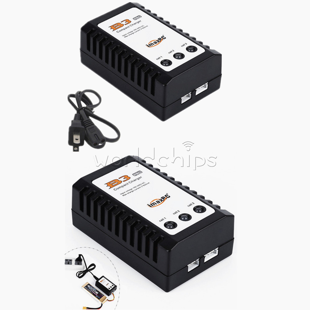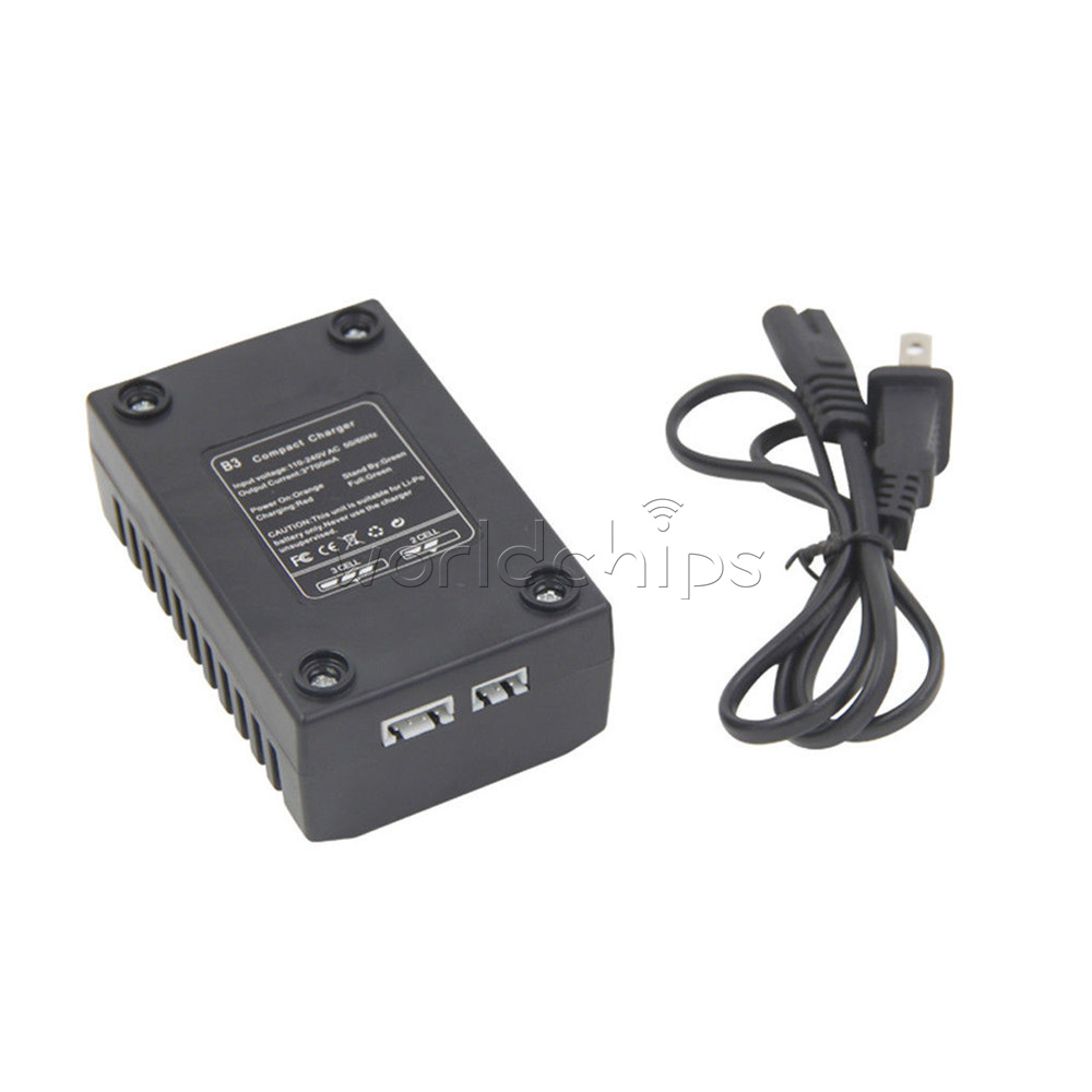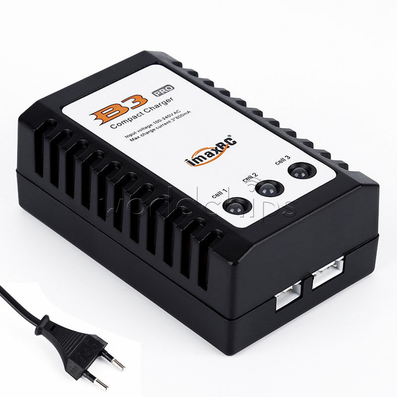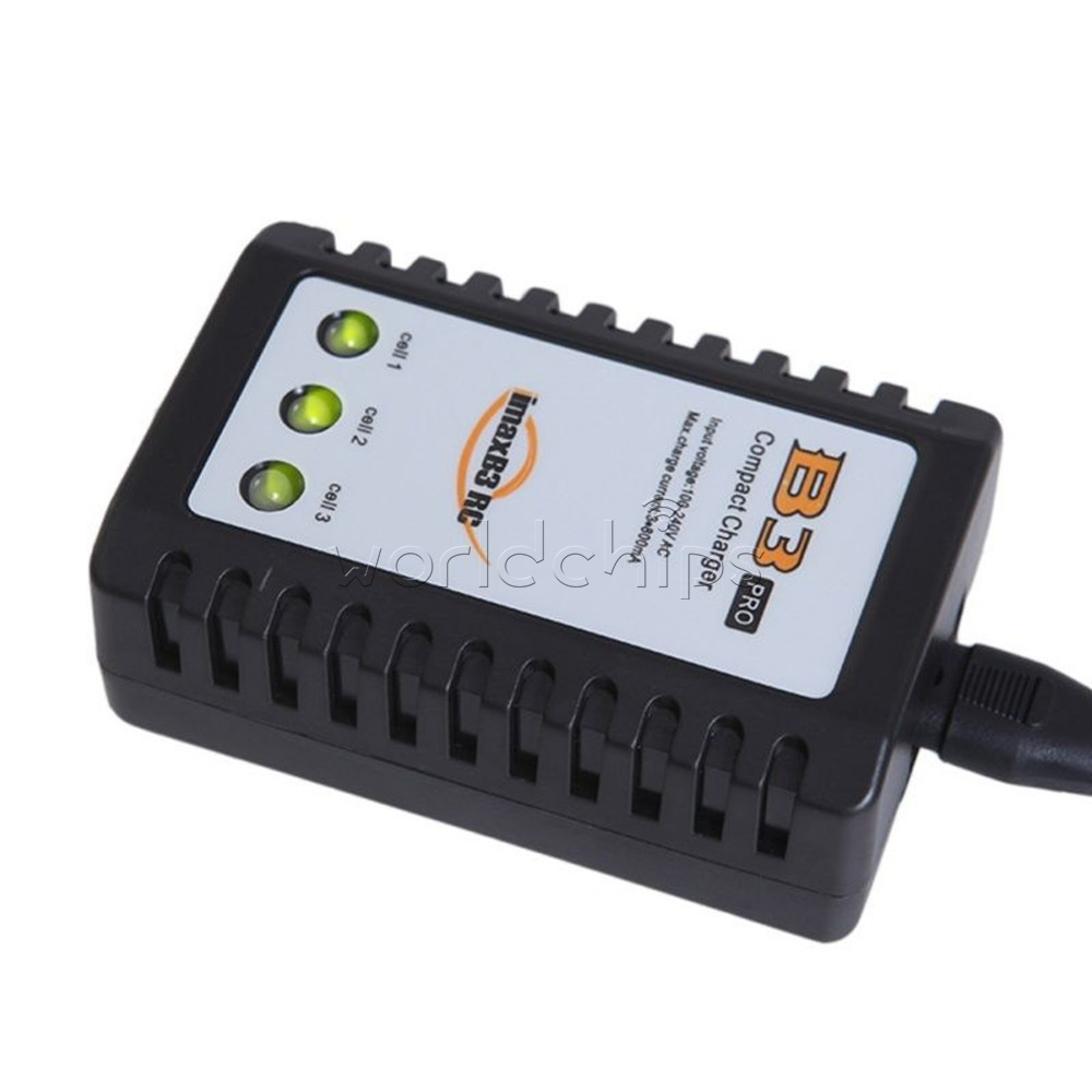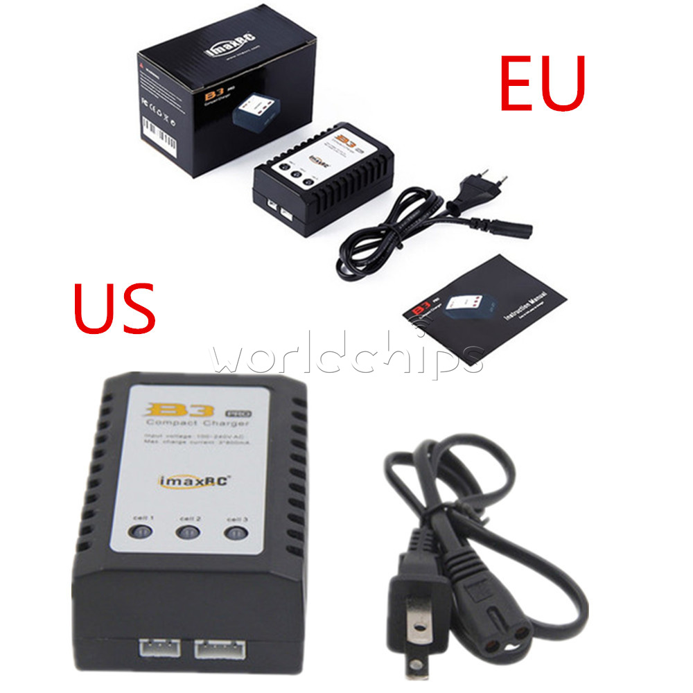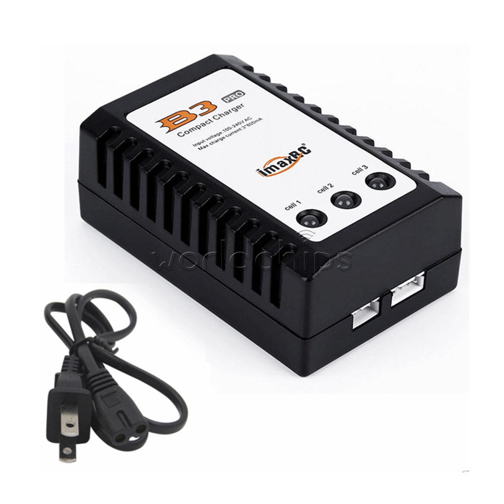 iMaxRC B3 (US Plug) 100% brand new and high quality With the development of electric technology, we have a new design of easy compact balance charger for 2 and 3 cells LiPo battery fast charging with wide AC input. A internal 100-240V AC switch power is built in, and the high precision balance circuit can supply larger current up to 850mA per cell. Double colour LED can display the process of charging (RED: charging; GREEN: full). This charger is compact and light, especially there is separated corresponding balance port for each battery pack. Specifications: Input voltage: AC 100V-240V Balance charge current: 850mA Max charger current: 3*800mA Display:3x Bicolor LED Power plug: US Plug Display: Green & Red LED Case material: ABS Dimension: 90 x 55 x 35mm/3.5 x 2.2 x 1.4 inch Main color: Black, As the pictures shown Quantity: 1 Pc Package Included: 1PC*iMaxRC B3 Balance Battery Charger