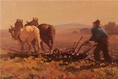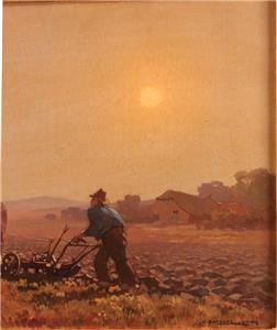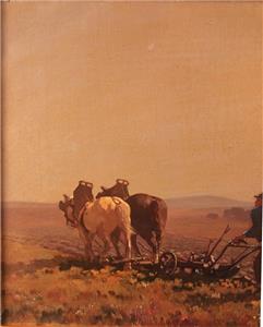 Here we have a beautiful oil painting of a "Country Landscape with a Farmer Plowing His Field" by listed Dutch artist Jan Knikker Jr. Signed lower right "J. Knikker Junior". Jan Simon Knikker was born on 8th February 1911 in Leiden (NL) and died in 1990 in The Hague (NL). He was the son of listed artist Jan Simon Knikker Sr. (1889-1957). The artwork is housed in a new Dutch style black and gold frame. The entire piece measures 18" by 22". The artwork itself measures 12" by 16". It is in excellent condition with some slight undulations in the canvas. A charming work that would complement any decor.
