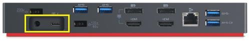 x1 Thunderbolt3/USB-C (Rear-facing) Uplink Connection x1 SlimTip socket for 20V/135W Power pack |