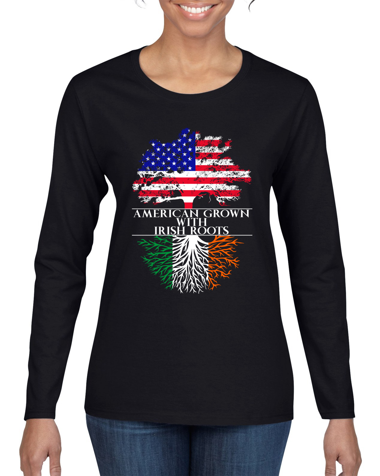 American Grown with Irish Roots St Patricks Day Women Graphic Long Sleeve Tshirt