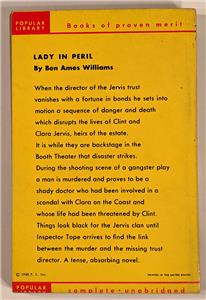 Lady in Peril by Ben Ames Williams; cover art by Rudolph Belarski (c.1948) Popular Library #164