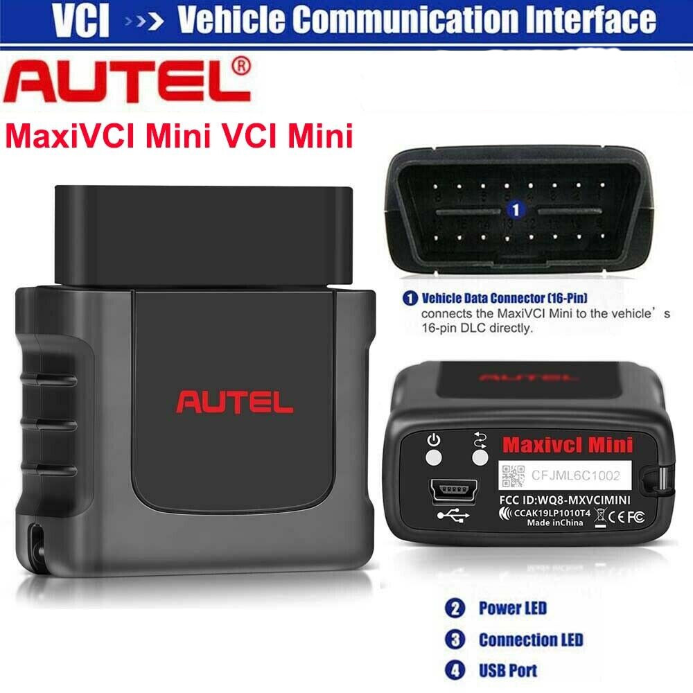 Original Autel MaxiVCI Mini VCI Mini Bluetooth-compatible Diagnostic Interface Autel VCI Mini is designed to connect wirelessly with the MaxiCom / Maxicheck / MaxiPro and MaxiTPMS Display Tablet, as a vehicle communication interface (VCI) for vehicle data transmission. Thanks to the wireless Bluetooth-compatible technology, with which you are allowed to work freely around the vehicle. This interface device can communicate with vehicles' electronic control units (ECUs), guaranteeing performance and speed that redefine multi-brand diagnostics. Vehicle Communication interface: MaxiVCI MINI Broad Compatibility: It can work with Autel MK808BT/ MK808BT Pro/ MX808TS/ MK808TS/ MK808S-TS/ DS808TS/ DS808S-TS/ MP808TS/ MP808S-TS/ MP808BT/ MP808BT Pro/ MP808BT Kit/ TS608 etc. Wireless Bluetooth Technology + 10m Working Range: Thanks to wireless Bluetooth technology, the VCI Mini offers 10-meter wireless diagnostic range that allows you to work unfettered outside the car. Power Sources: The MaxiVCI Mini operates on 12-volt vehicle power, which is received through the vehicle’s DLC. The unit powers on whenever it is connected to the vehicle’s DLC. Wirelessly connects ECU to perform ECU Coding, Full TPMS, Bi-directional Control, Services etc. Connect MaxiVCI Mini to Autel Scanner Connect the VCI MINI to the scanner in three simple steps Step 1: Insert the MaxiVCI Mini on the vehicle’s DLC Step 2: Power up scanner Steps 3: Turn on scanner Bluetooth icon, connect with VCI MINI To connect to Non-OBD II Vehicles 1. Locate the required OBD I adapter and connect its 16-pin jack to the Vehicle Data Connector on the MaxiVCI Mini. 2. Connect the attached OBD I adapter to the vehicle’s DLC. Another way to connect via USB Cable: After VCI mini connected with DLC, you can also use USB Cable to conect with Autel scaner. NOTE: When both the communication methods are applied at the same time, the MaxiCOM system will use the USB communication as the default priority. Update Autel MaxiVCI Mini Update via Scanner: Before updating the VCI software, ensure the scanner’s connection to the Internet is stable. To update the MaxiVCI Mini software 1. Power on the scanner. 2. Connect the MaxiVCI Mini to the scanner via USB. 3. Tap the VCI Manager application on the MaxiCheck Job Menu of the scanner. 4. Select Update from the connection mode list. 5. The current version and the latest version of the VCI software will be displayed after a few seconds. Click Update Now to update the VCI software if available. Update via P-C 1. Download the Maxi P-C Suite from offi-cial we-b> Support > Downloads > Diagnostic Tools, and install it onto your wind-ows-P-C. 2. Connect the MaxiVCI Mini to a P-C using a USB cable. 3. Launch the P-C Suite on the P-C which is installed after the installation of Maxi P-C Suite and click MaxiVCI Mini icon in the Device Selection window. 4. The P-C will automatically recognize the MaxiVCI Mini. 5. Click Update to complete the update if an update is available. Special Functions Once connected to the scanner, the MaxiVCI mini can perform advanced features such as ECU Coding, hot services for 99% cars, all system diagnosis, active test ect. Using the Bluetooth connector makes maintenance easier and more convenient, doubles the efficiency and doubles the convenience. Tips: 1. Connects to The Vehicles OBDII Port 2. Lightweight Vehicle Connection Interface (VCI) 3. Enables The Autel Tablet to Connect to The Vehicles 4. Allows Technician to Perform Testing Outside Vehicles 5. The Tablet in This Advertising is Not Included! It is for Reference Only! 6. The MaxiVCI Need to Be Used With Autel Tablet Device Like MK808BT, MK808TS, MX808TX, MP808TS, etc. Power Sources The MaxiVCI Mini operates on 12-volt vehicle power, which is received through the vehicle's DLC. The unit powers on whenever it is connected to the vehicle's DLC. Autel MaxiVCI – Vehicle Communication Interface The wireless diagnostic interface MaxiVCI Mini is a small vehicle communication interface (VCI) used to connect to a vehicle's data link connector (DLC) and connect wirelessly with the tablet for vehicle data transmission. 1. Vehicle Data Connector (16-Pin) – connects the MaxiVCI Mini to the vehicle's 16-pin DLC directly. 2. Power LED – refer to Table 2- 2 Power LED on the Front Panel 3. Connection LED – refer to Table 2- 3 Connection LED on the Front Panel 4. USB Port – provides the easiest connection between the device and the tablet via a USB cable. Table 2- 2 Power LED on the Front Panel LED Color Description Power Green Lights solid green when powered on Red Blinks red when system failure occurs. Note: The power LED briefly lights red each time the device powers on and then lights green when the device is ready Table 2- 3 Connection LED on the Front Panel LED Colo Description Connection Green * Lights solid green when the device is successfully connected via the USB cable but is not communicating with the vehicle. Blue * Lights solid blue when the device is successfully connected via BT but is not communicating with the vehicle. Specification: Item Description Communications * BT V.2.1 + EDR Wireless Frequency 2.4 GHz Input Voltage Range 12 VDC to 24 VDC Supply Current 150 mA @ 12 VDC Operating 0°C to 50°C (ambient) Storage -20°C to 70°C (ambient) Package includes: 1pc x Autel MaxiVCI Mini