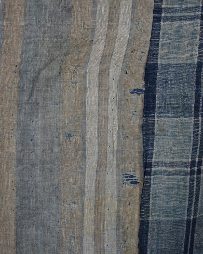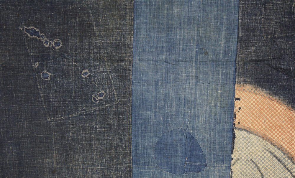 Hand made Japanese Futon cloth rapper from antique house, medium conditions, old hand made restorations, stitches, repairs and damages. Wear marks from long usage, Japan craft.
