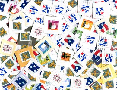 We frank all packages with USA commemorative & High Value stamps, lightly canceled with round CDS and protected with plastic for your collecting pleasure.