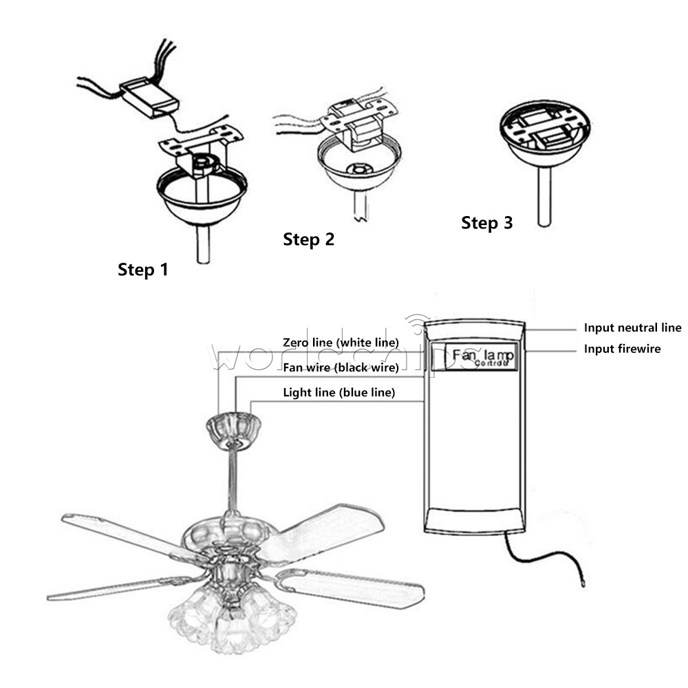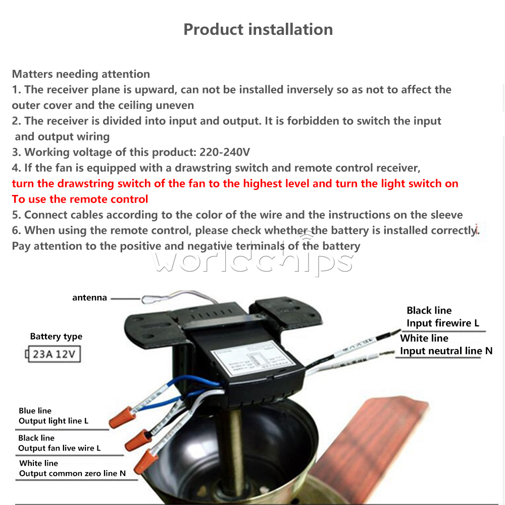 4. If the fan has a pull cord switch and remote control receiver, please pull the fan's pull cord switch to the highest level, the light switch to the light on state before the remote control