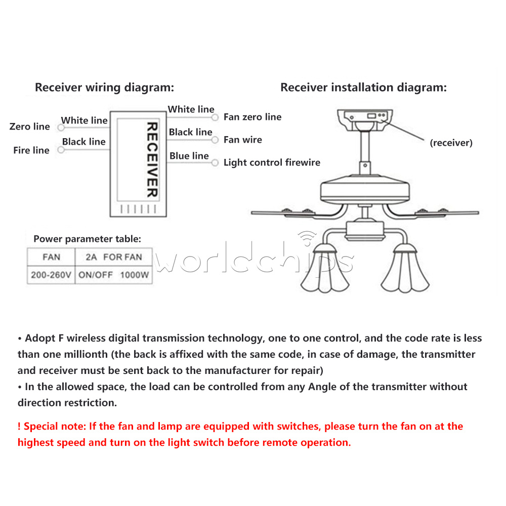 Ceiling fan light special remote control and receiver set, suitable for home, office, hotel, club, restaurant, exhibition hall and other places
