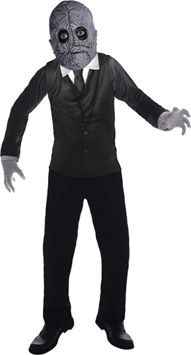 This gruesome mask with face staples and creepy puckered skin is going to really scare people on Halloween!