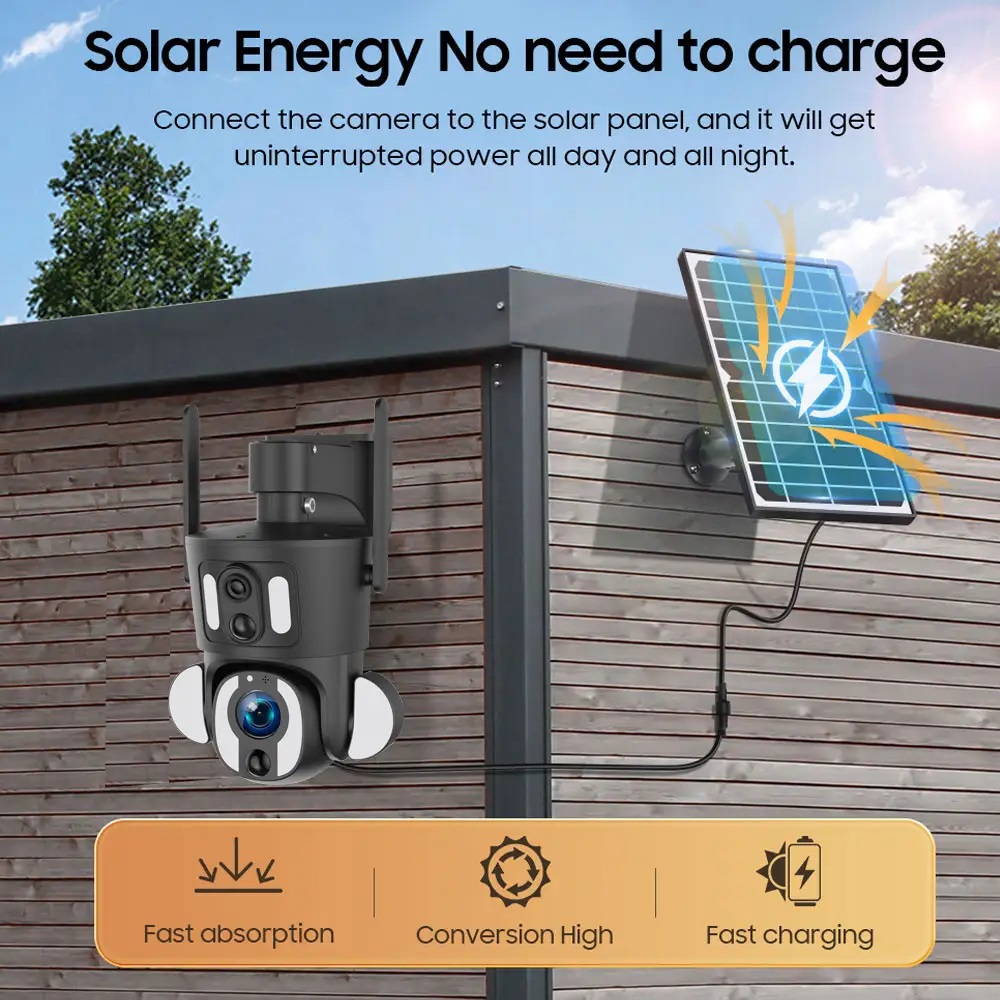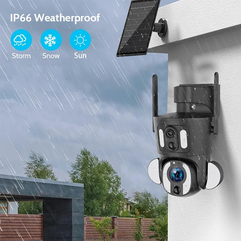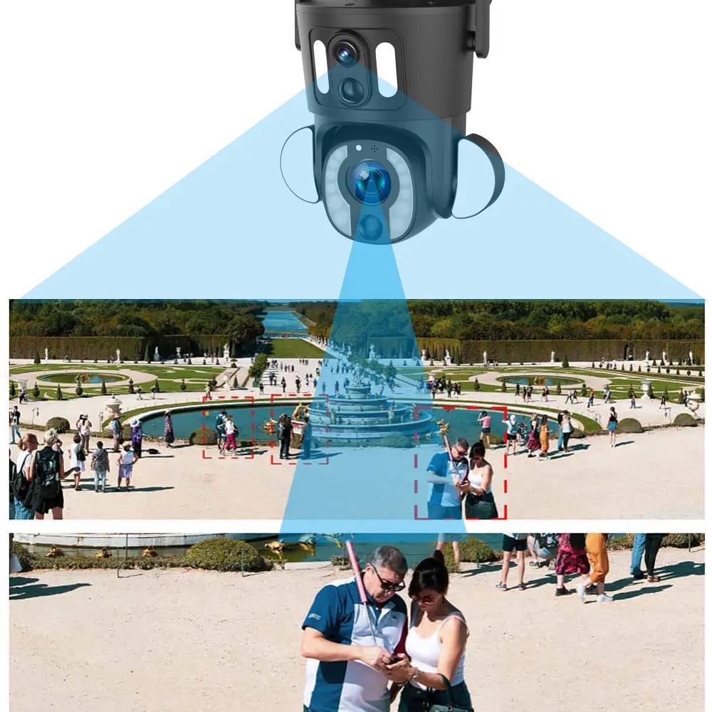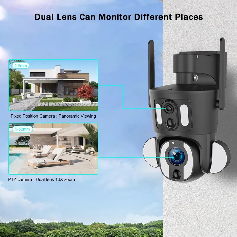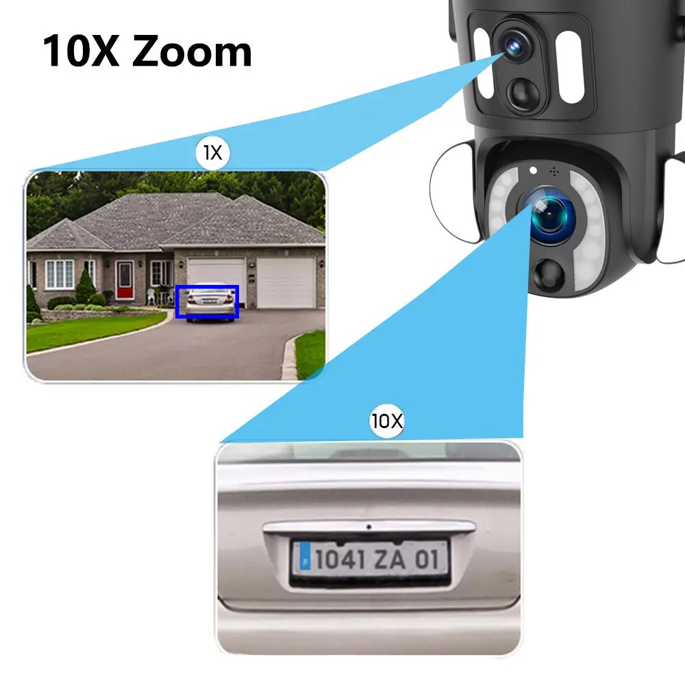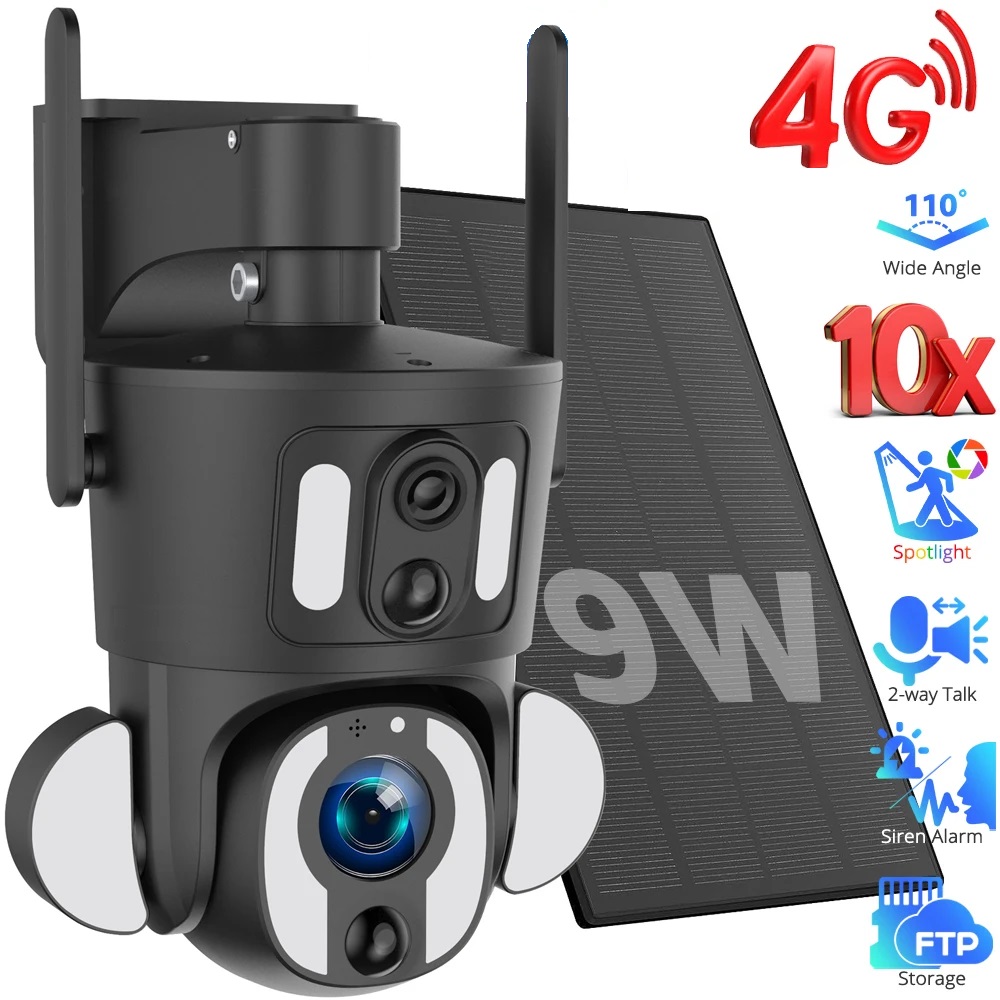 The dual lens 4MP+4MP (8MP) with 10x optical zoom and human detect. This security camera is packed with features and completely wire free with 4G sim card and battery/solar powered.