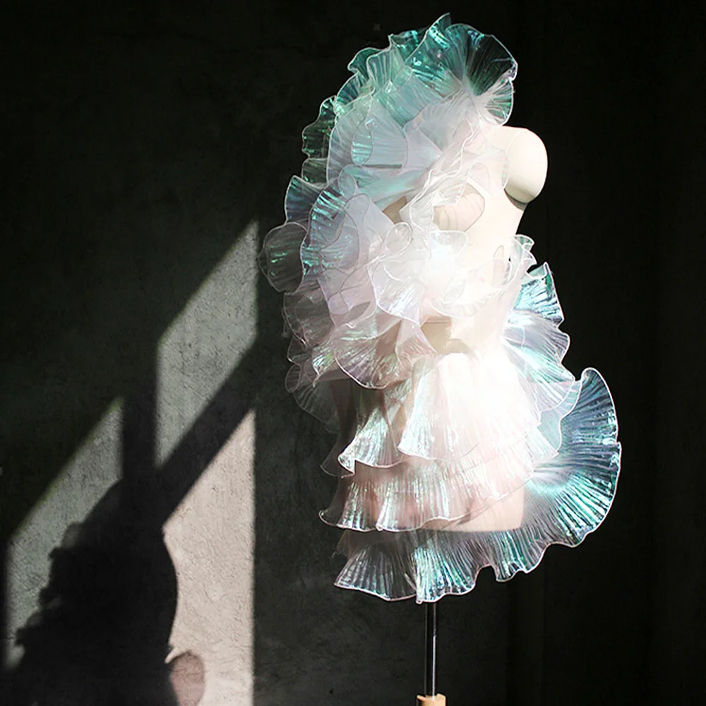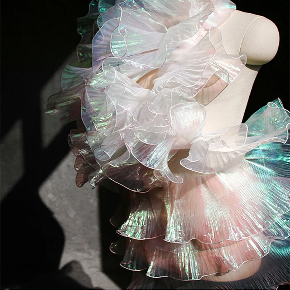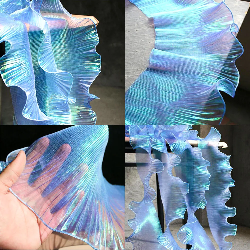 Lace For Dress 1/2 Yards Mermaid Laser Gradient Effect Chiffons Wave Striped DIY Cloth Accessory