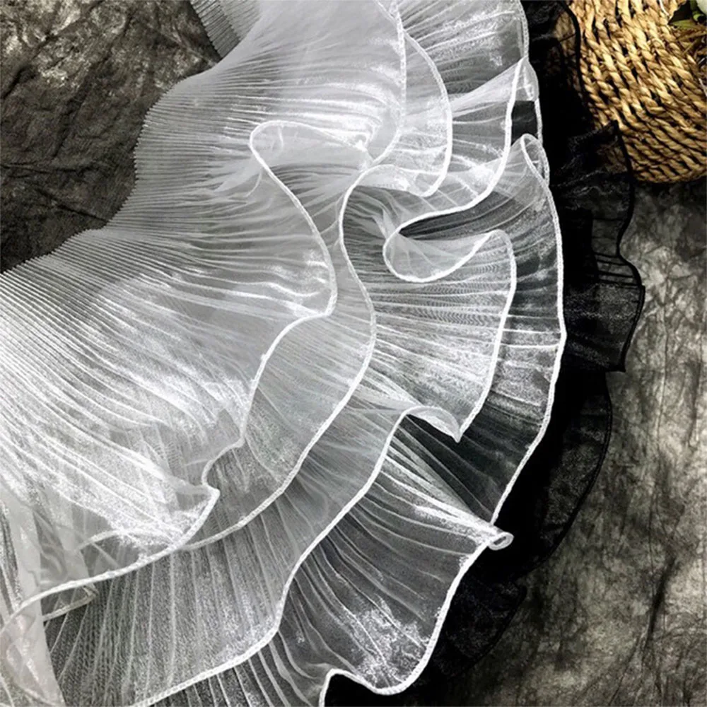 Elastic Fabric: Easy to shape, retro pleated organza ruffle trim, easy to shape due to slightly hard material, elastic ruffle trim provides cute decoration for your sewing and handicraft projects.