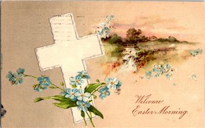 Welcome Easter Morning White Cross Embossed Flowers Bridge Over Rive Postcard