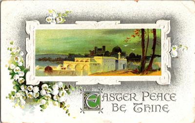 Easter Peace Be Thine White Adobe Church Embossed With White Lilies Postcard