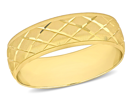 This stylish men's wedding band is crafted in shimmering 14k yellow gold. Polished to a brilliant shine, this enchanting ring will always remind him that true love stories never have an ending. This exquisite ring will be a symbol of hope, perseverance and commitment to achieve the most memorable thing in your life. A priceless addition to his jewelry collection and his life.