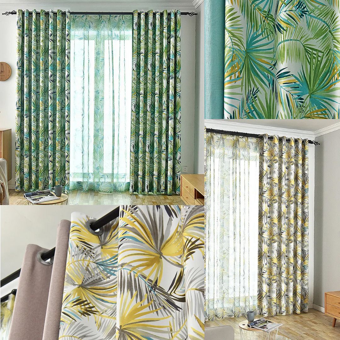 curtains, featuring lush foliage, vibrant patterns, and a burst of refreshing