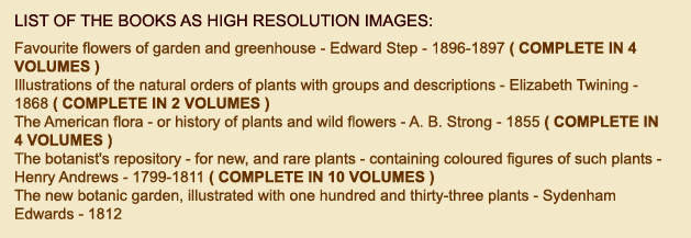 This data DVD contains 5 antique books about BOTANY with beautiful COLOR ILLUSTRATIONS, in facsimiles as HIGH RESOLUTION images, meaning that in most cases every page of the real book corresponds to an image. The resolution of these images varies from book to book and it is approx. 2100x3600 pixels. All the books contain wonderful illustrations as you can see below. They have a total of over 4500 pages and are written in English.