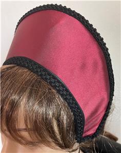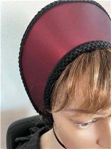 This listing is for a Tudor French hood/Anne Boleyn/Renaissance/headpiece. It's made of burgundy taffeta with black gimp trim and ties that can be tied in the back or front. The perfect addition to one of my Tudor gowns or your own, it's comfortable and can be worn all day without being too heavy as well as being plain, it can be adorned by adding your own touches to it. I have several other colors listed to match my Tudor gowns as well additional colors and will be listing different fabric types as well. This is not a 100% historically accurate headpiece, but would be great for theater, Renaissance fairs, Halloween or any other events that you wear a costume. Hoods/headpieces are non-returnable and non-refundable unless there is a default, so please check all measurements, ask questions and buy with confidence. Thanks for looking and feel free to e-mail me with any questions or additional measurements.