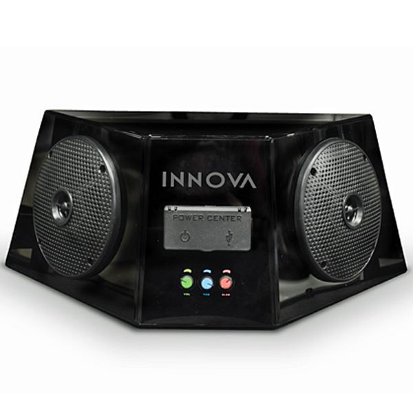 INNOVA All-In-One Speaker Box with a built in mini amp for crisp clear sound and Bluetooth capabilities. Best of all, it has an integrated charging bank for keeping your devices fully charged on the go.