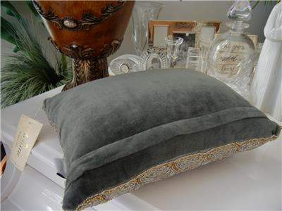 Add a little charm to your living room or bedroom with this gorgeous embellished silver and gold beaded decorative throw pillow. A gorgeous and elegant gray velvet backing with a full length zipper closure making this decorative pillow a striking addition to your home.