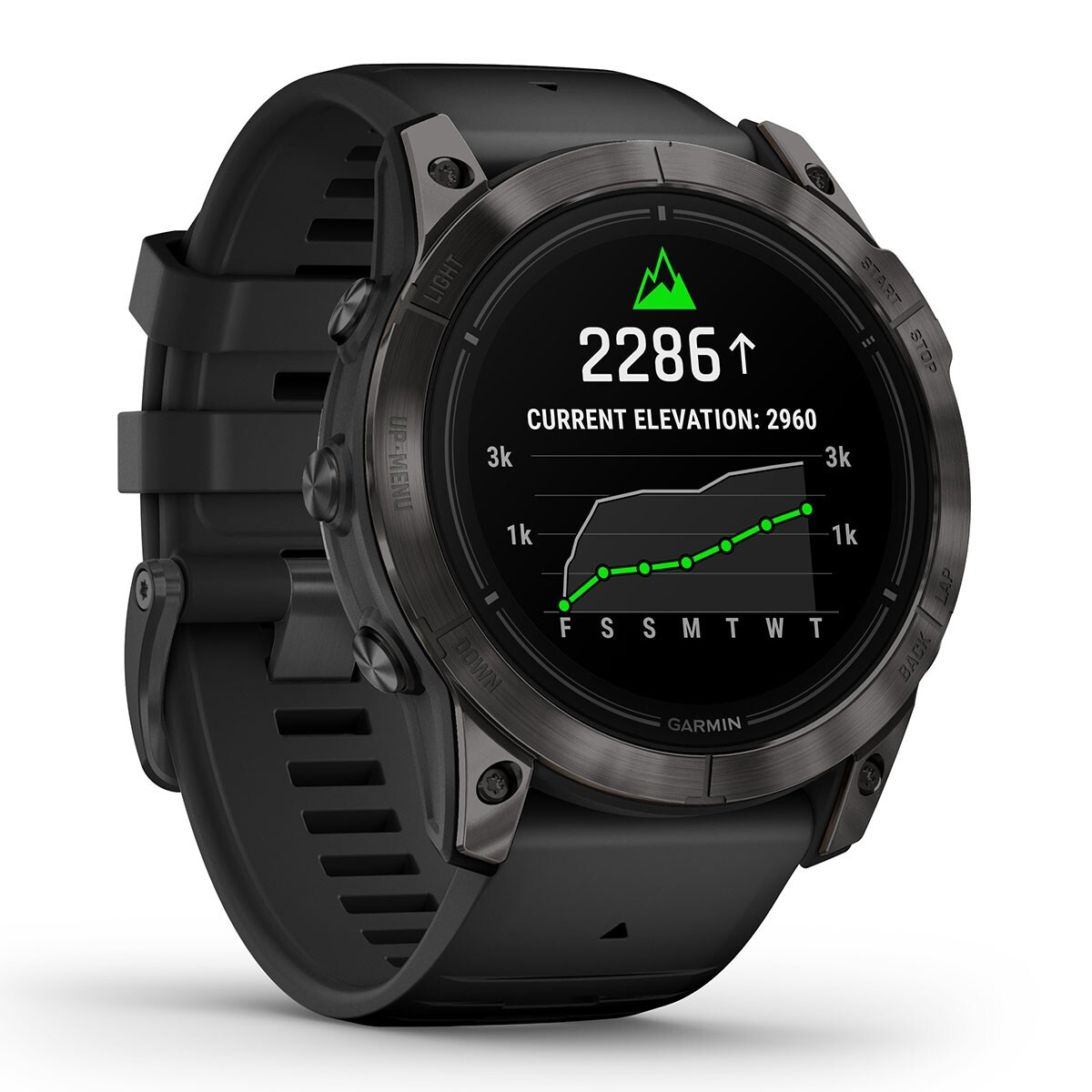 The bright LED flashlight provides convenient illumination when you need it. Prioritize your mental and physical wellness with 24/7 health monitoring features such as advanced sleep tracking, HRV status, and more (data presented is intended to be a close estimation of metrics tracked). Download TopoActive maps from around the world to keep your explorations on track. Navigate on the slopes with 2,000 preloaded ski resort maps worldwide. Gain superior positioning accuracy in any environment while optimizing battery life, thanks to multi-band and multi-GNSS with SatIQ technology.