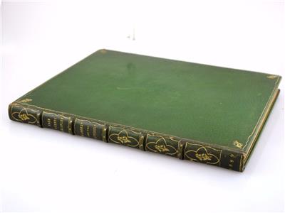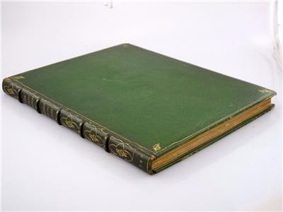 A wonderful book in a beautiful custom leather binding! Binding is signed by The Fifth Avenue Book Shop on the rear inside cover, gilt on the bottom edge. Bound in full green Moroccan leather with floral gilt decoration on the spine, gilt borders on both inside and outside front and rear covers. Top page edges gilt. Some pages remain uncut. Printed by letterpress on handmade paper; outside edge rough cut. Illustrated with small printers devices, mostly in the margins or to end a chapter. Beautiful handmade book in very good condition!