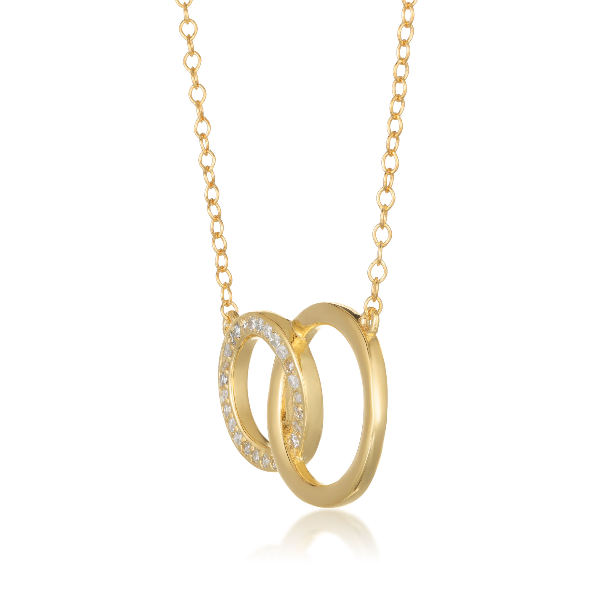 Yellow Gold Plated 925 Sterling Silver Interlocking Circles Necklace w/ Diamonds