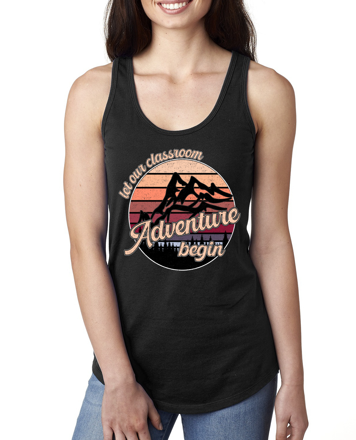 Let Our Classroom Adventure Begin Darker Colors Ladies Racerback Tank Top