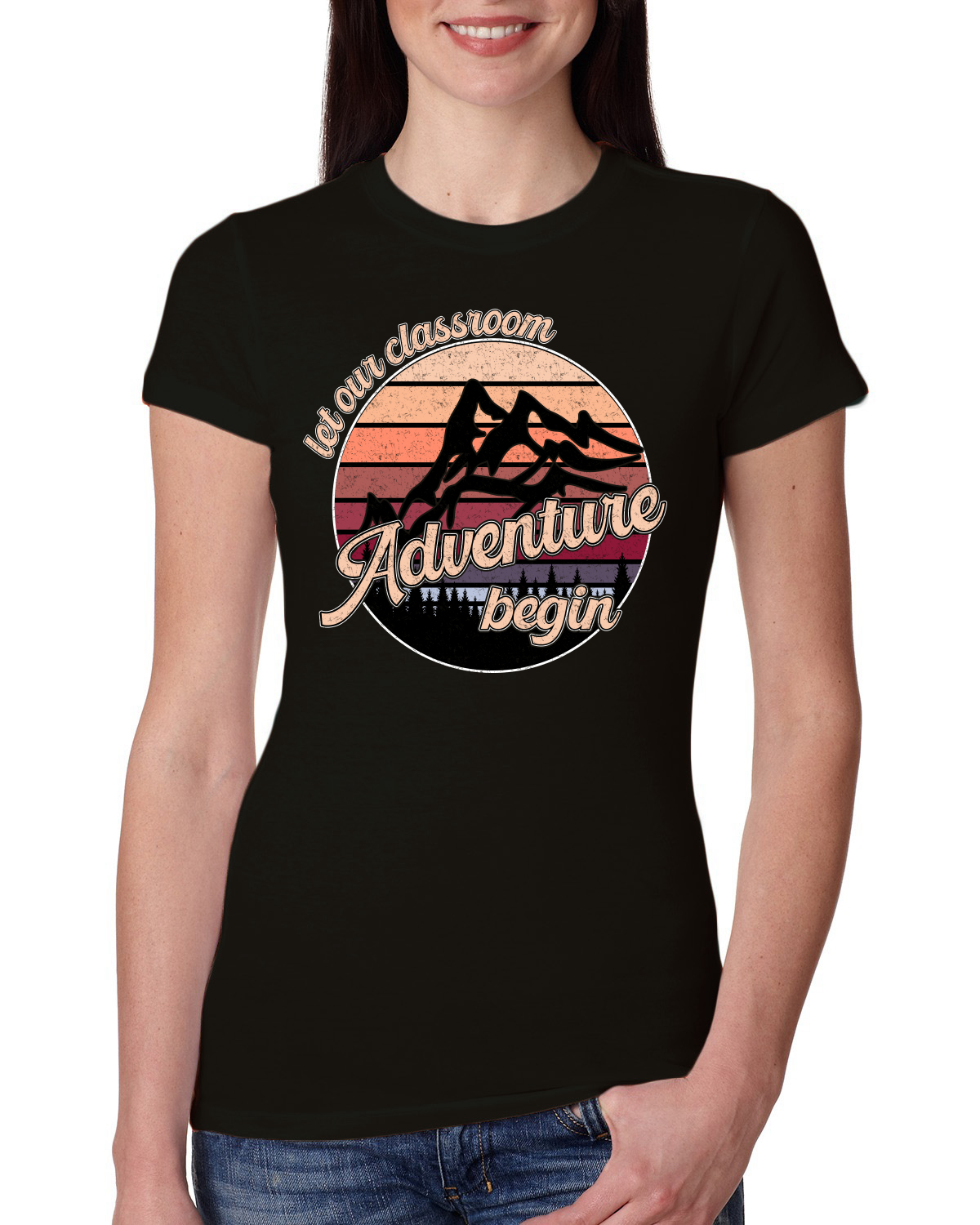 Let Our Classroom Adventure Begin Darker Colors Women Slim Fit Junior Tee