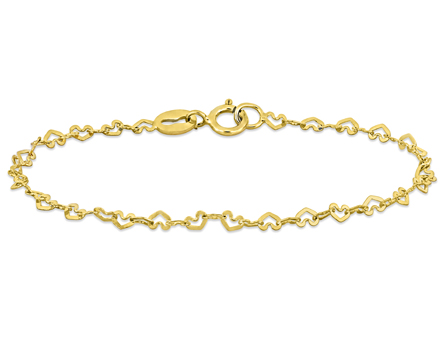 Celebrate the sweetness of life with Women's 2mm Heart Link Baby Bracelet in 14k Yellow Gold - 5 in. This delicate and dainty bracelet features heart-shaped links, adding a touch of cuteness and charm to your little one's wrist. The 2mm thin and delicate design makes it perfect for layering and stacking with other bracelets, creating a stylish and fashionable look for your little fashionista. The bracelet is crafted from premium-quality 14k yellow gold, adding durability and an extra layer of sophistication to the design. It is a giftable item that is perfect for any special occasion, including Valentine's Day, birthdays, or just because. The bracelet is a timeless and elegant accessory that is sure to be treasured for years to come.