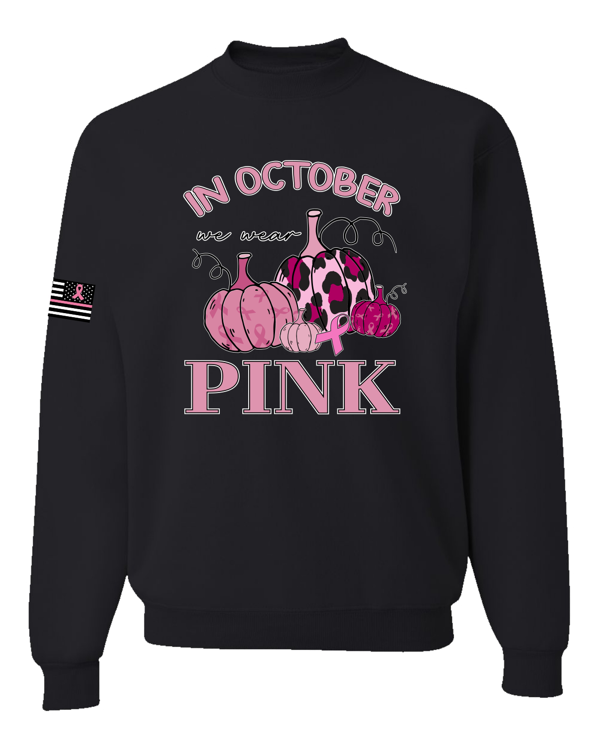 In October We Wear Pink Pumpkin Cheetah Print Unisex Crewneck Graphic Sweatshirt