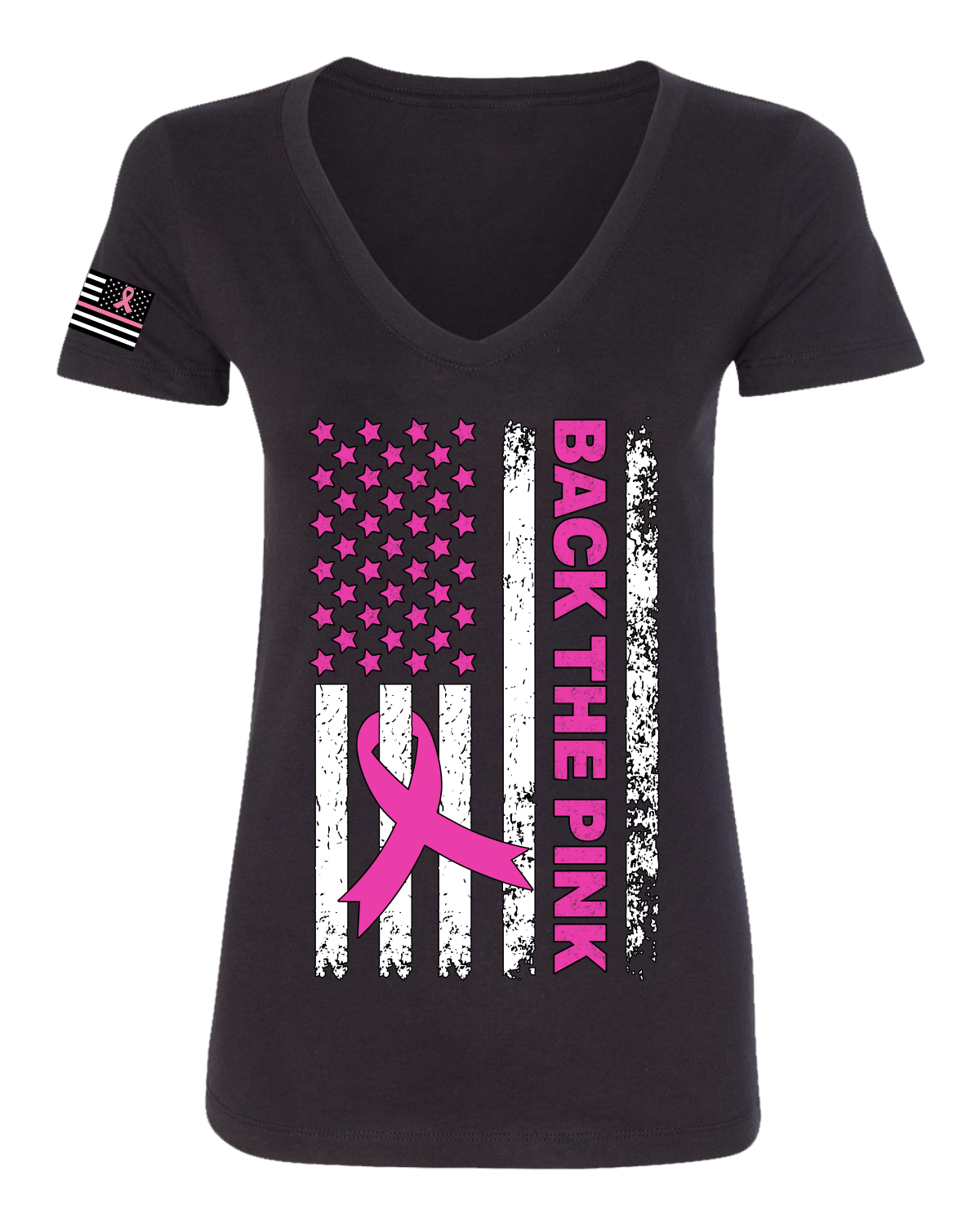 Back the Pink American Flag Women Junior Fit VNeck Tee