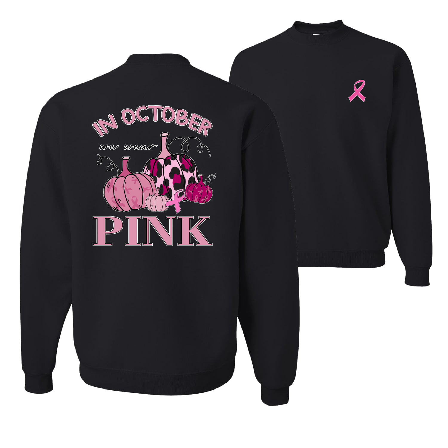 In October We Wear Pink Pumpkin Cheetah Print Unisex Crewneck Graphic Sweatshirt